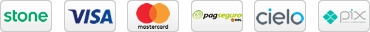Principais bandeiras aceitas: Visa, mastercard, amex, hipercard, elo, aura