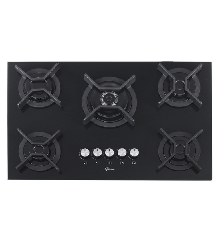• Cooktop 5 Bocas a Gás com Acendimento Automático Vidro Preto Bivolt Infinity 26298-57077 Fischer